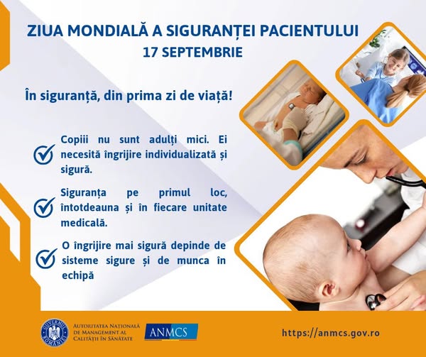 17 septembrie este marcată ca Ziua Mondială a Siguranței Pacienților, o zi instituită de Organizația Mondială a Sănătății (OMS) în anul 2019, pentru a recunoaște siguranța pacienților ca o prioritate globală.