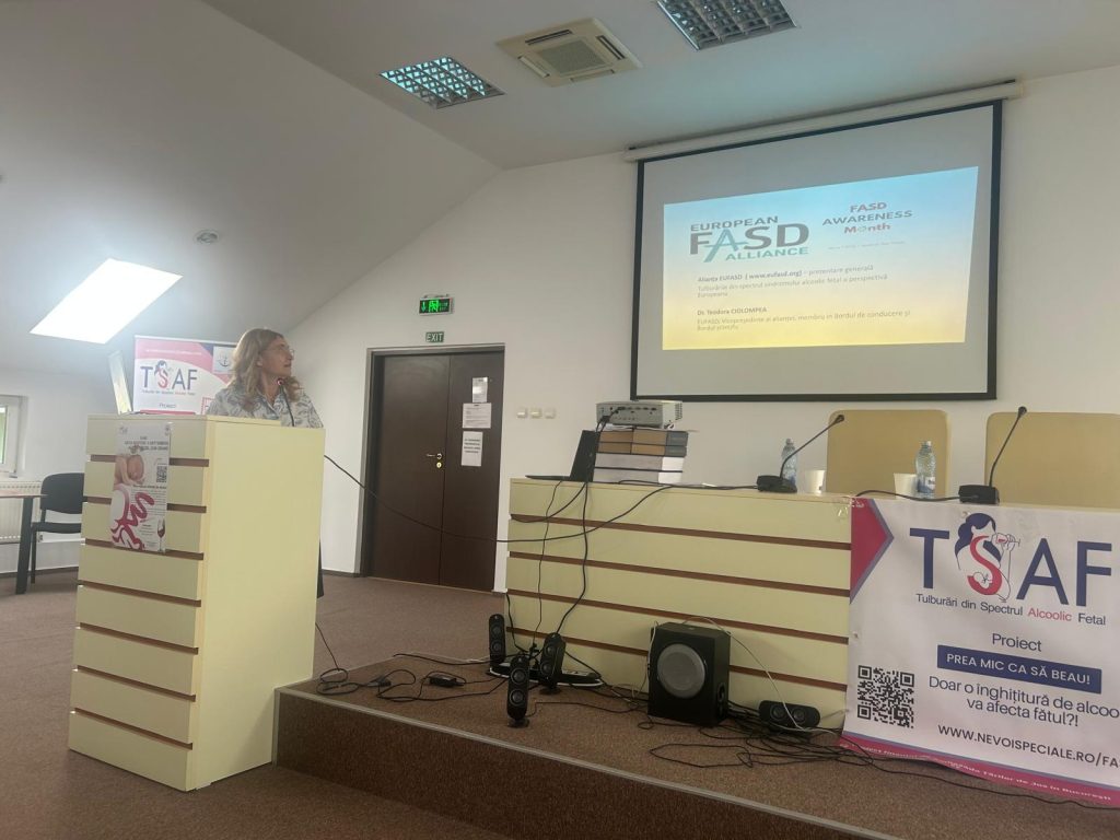 La București, în zilele de 4 și 5 septembrie, sub egida alianței internaționale EUFASD, prin colaborarea dintre două spitale de psihiatrie (pediatric și de adulți) și un ONG de profil – Fundația “Ancora Salvării”, care activează în sprijinul copiilor cu dizabilități în Iași, Suceava și Republica Moldova – s-a desfășurat evenimentul intitulat: „Prea mic ca să beau! Doar o înghițitură de alcool va afecta fătul?!”